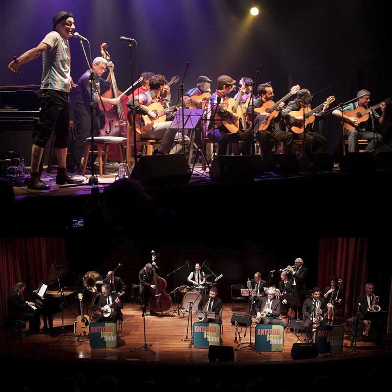 En la sexta edición de este ciclo y última del año, las Guitarras del Once compartirán escenario con la mítica agrupación Antigua Jazz Band, que celebra sus 57 años de trayectoria con un show con 14 artistas en escena. La velada se completará con el show de la Guitarras del Once junto a Los Hermanos Rivas como invitados, en lo que será una inolvidable noche de tango y jazz.